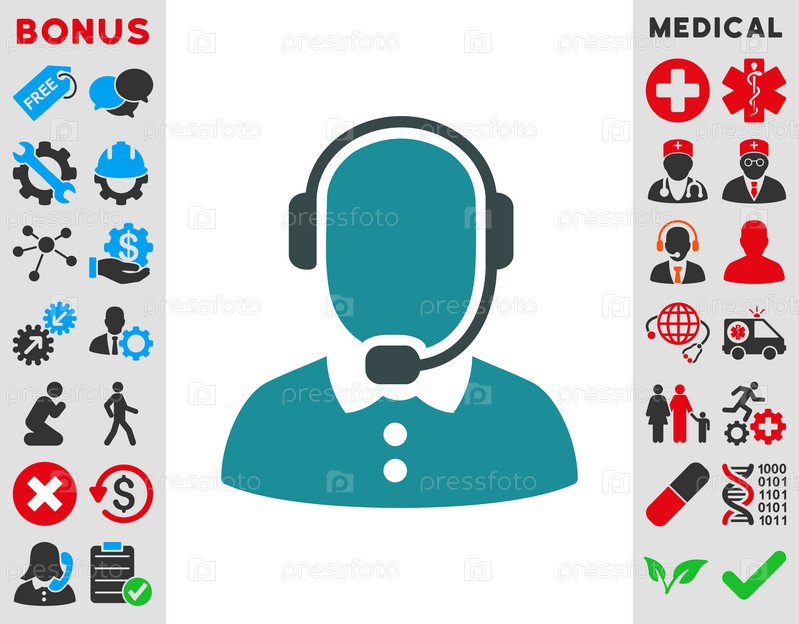Оператор центра звонков иллюстрации значок. Стиль-биколор плоский символ, мягкого синего цвета, закругленные углы, белый фон