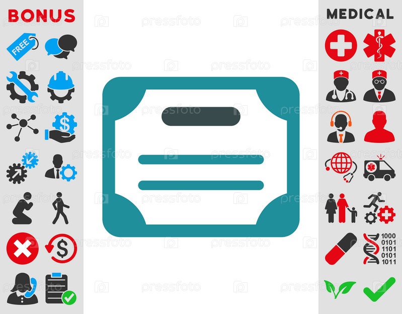 Сертификат иллюстрации значок. Стиль-биколор плоский символ, мягкого синего цвета, закругленные углы, белый фон
