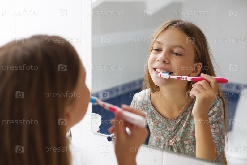 Девочка чистит зубы
