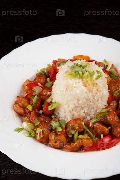 Мясо с овощами и японским рисом