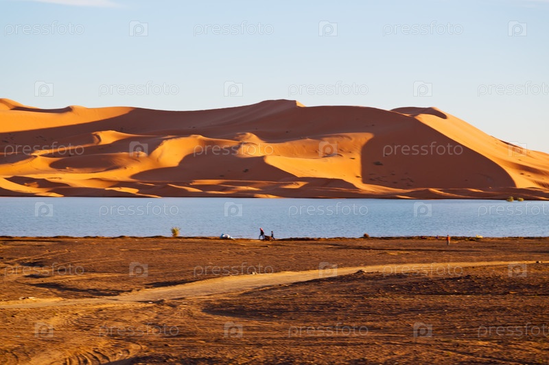 Озеро и песчаные дюны, Марокко