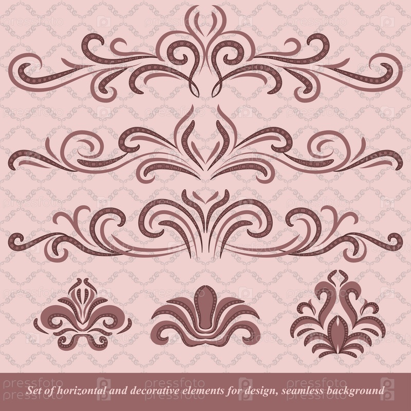 Набор горизонтальных декоративных элементов для дизайна в винтажном стиле на розовом фоне