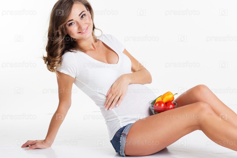 Беременная женщина с тарелкой овощей