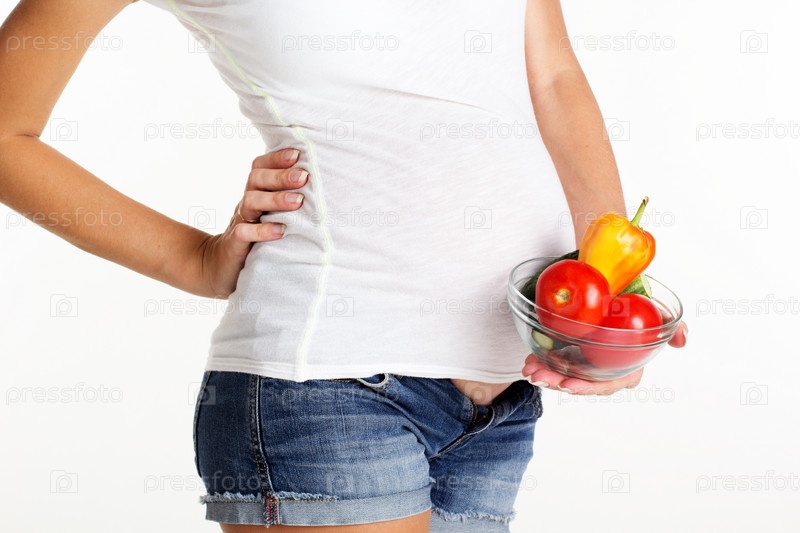 Беременная девушка держит овощи