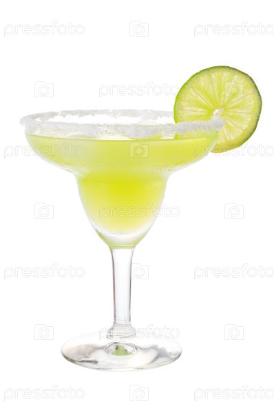Коктейль с ломтиком лайма на белом