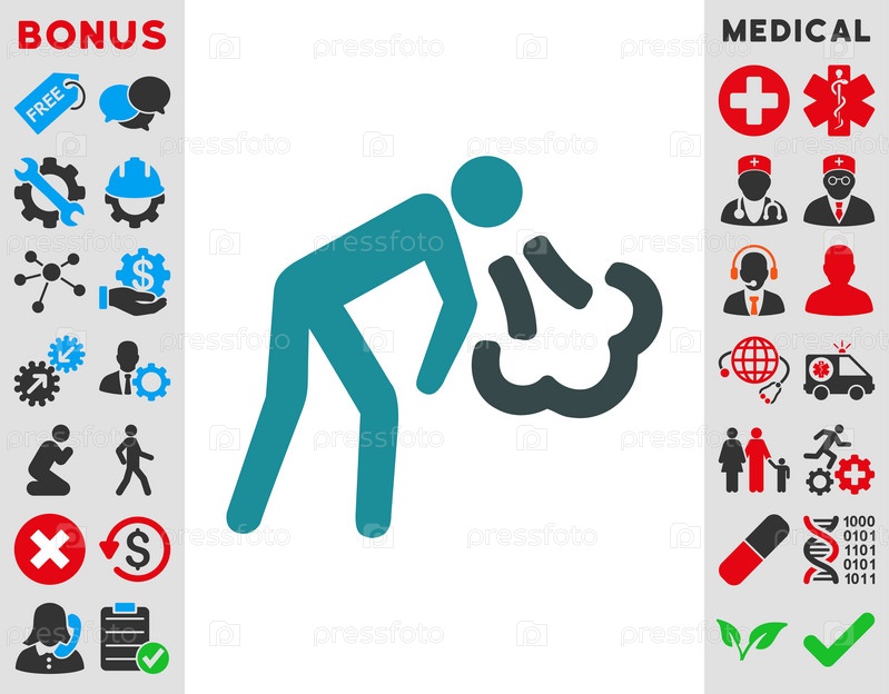 Кашель иллюстрации значок. Стиль-биколор плоский символ, мягкого синего цвета, закругленные углы, белый фон