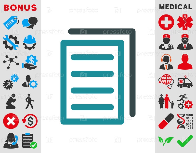 Копия документа иллюстрации значок. Стиль-биколор плоский символ, мягкого синего цвета, закругленные углы, белый фон