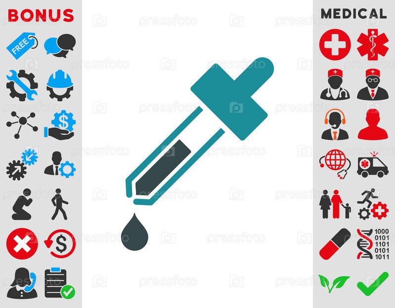 Иллюстрация значок пипетки. Стиль-биколор плоский символ, мягкого синего цвета, закругленные углы, белый фон