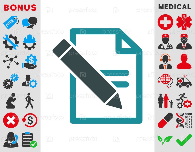 Редактирование записей иллюстрации значок. Стиль-биколор плоский символ, мягкого синего цвета, закругленные углы, белый фон