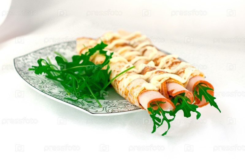 Блины с ветчиной на тарелке