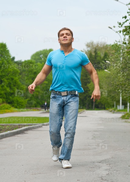 Красивый мускулистый парень на пробежке в парке