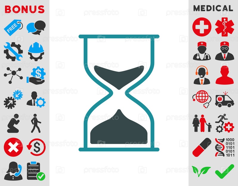 Значок песочных часов иллюстрации. Стиль-биколор плоский символ, мягкого синего цвета, закругленные углы, белый фон