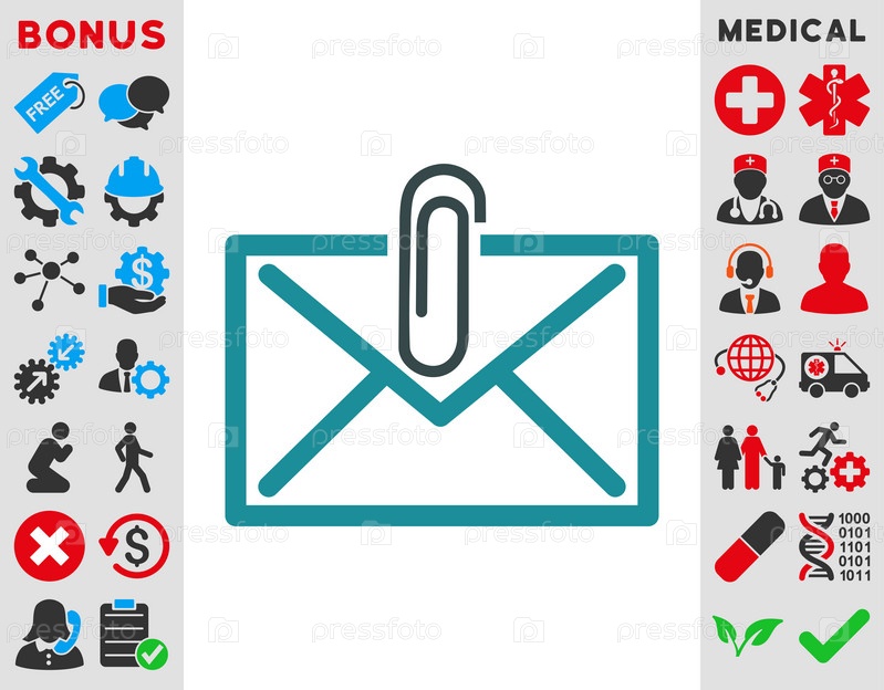 Значок иллюстрации вложения электронной почты. Стиль-биколор плоский символ, мягкого синего цвета, закругленные углы, белый фон