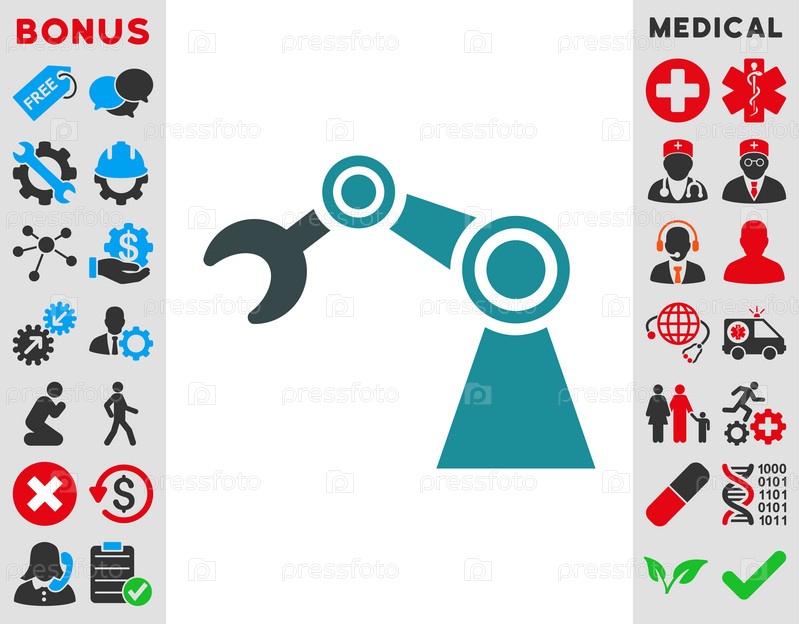 Манипулятор иллюстрации значок. Стиль-биколор плоский символ, мягкого синего цвета, закругленные углы, белый фон