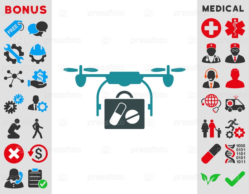 Медицинской иллюстрации значок дрон отправления. Стиль-биколор плоский символ, мягкого синего цвета, закругленные углы, белый фон