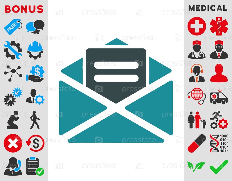 Открытой иллюстрации значок Почта. Стиль-биколор плоский символ, мягкого синего цвета, закругленные углы, белый фон