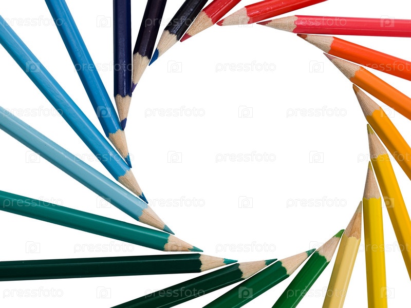 Цветные карандаши, линд круглый, белый фон, изолированный