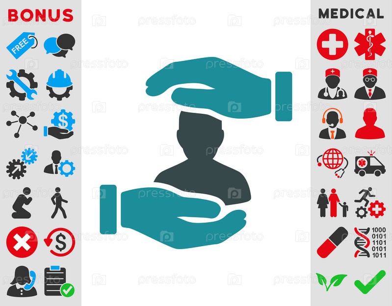 Пациент страхования иллюстрации значок. Стиль-биколор плоский символ, мягкого синего цвета, закругленные углы, белый фон