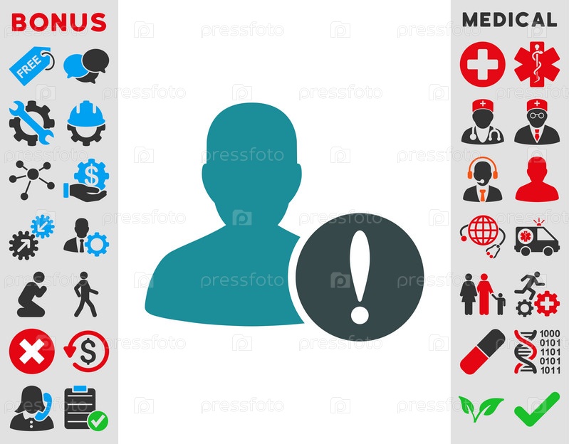 Пациент значок иллюстрации проблемы. Стиль-биколор плоский символ, мягкого синего цвета, закругленные углы, белый фон