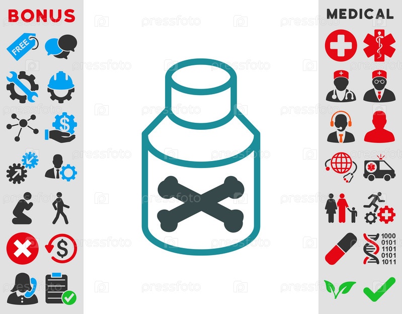 Яд бутылки иллюстрации значок. Стиль-биколор плоский символ, мягкого синего цвета, закругленные углы, белый фон