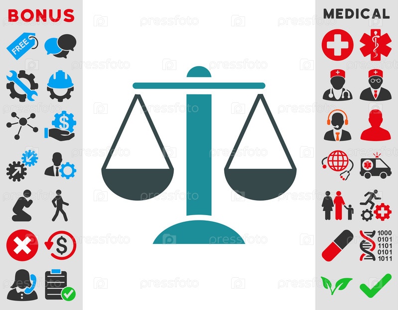 Весы иллюстрации значок. Стиль-биколор плоский символ, мягкого синего цвета, закругленные углы, белый фон