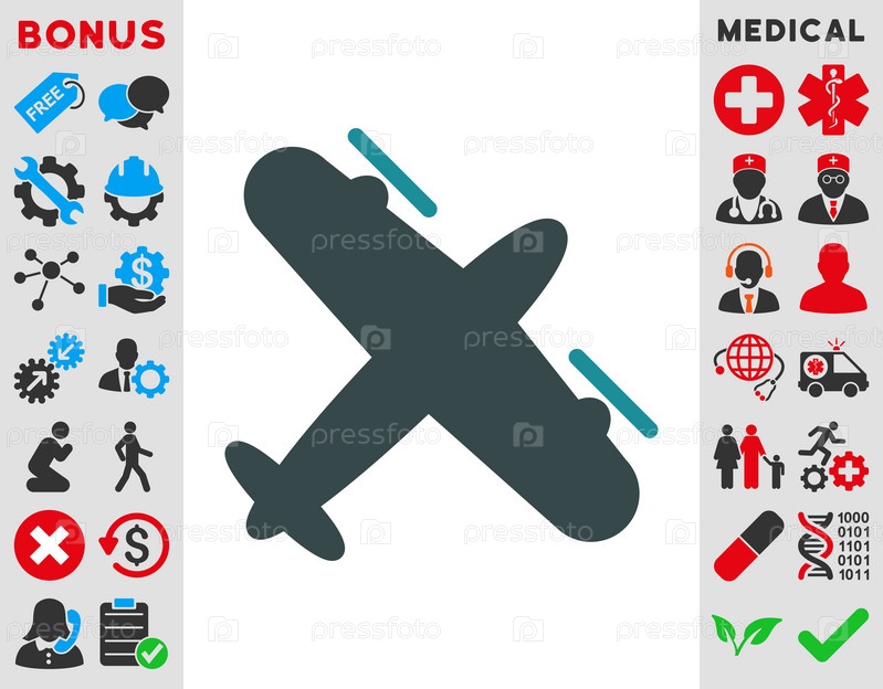 Винтовой самолет иллюстрации значок. Стиль-биколор плоский символ, мягкого синего цвета, закругленные углы, белый фон