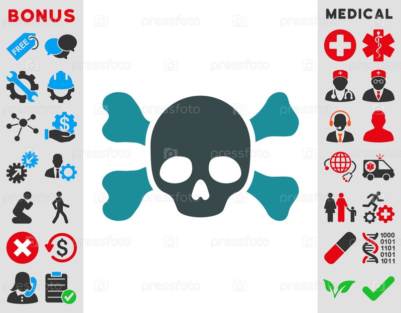 Череп и кости иллюстрации значок. Стиль-биколор плоский символ, мягкого синего цвета, закругленные углы, белый фон