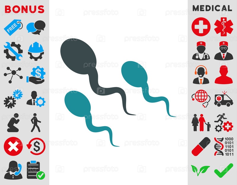 Спермы иллюстрации значок. Стиль-биколор плоский символ, мягкого синего цвета, закругленные углы, белый фон