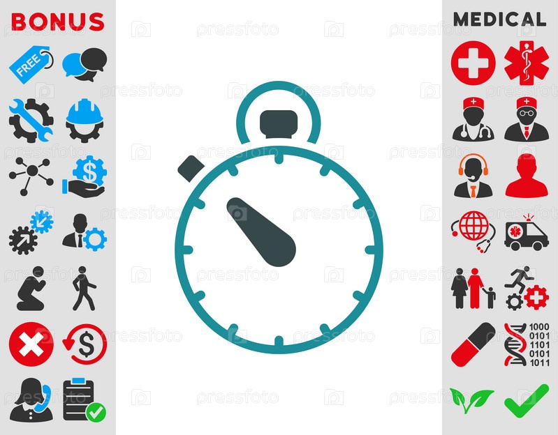 Иллюстрация значок секундомера. Стиль-биколор плоский символ, мягкого синего цвета, закругленные углы, белый фон