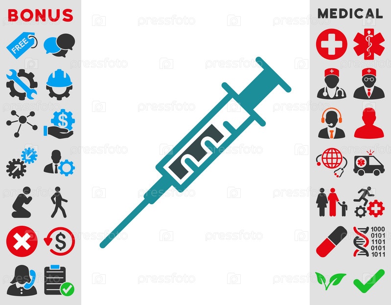 Шприц иллюстрации значок. Стиль-биколор плоский символ, мягкого синего цвета, закругленные углы, белый фон