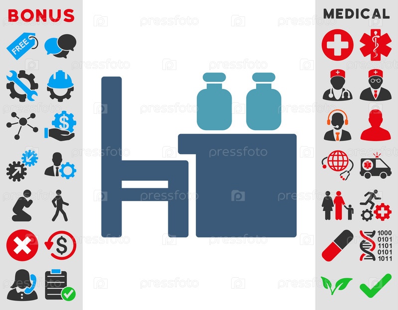 Аптекарь значок таблицы Иллюстрация. Стиль является биколор плоский символ, голубой и синий цвета, закругленные углы, белый фон