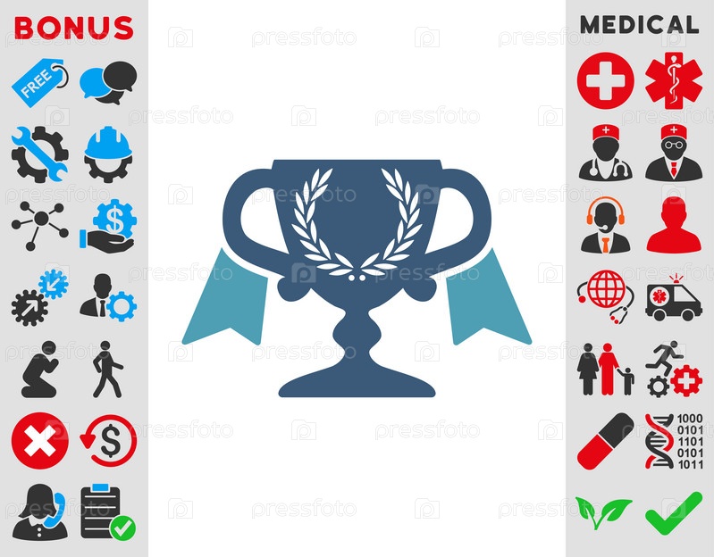 Премия Кубок иллюстрации значок. Стиль является биколор плоский символ, голубой и синий цвета, закругленные углы, белый фон