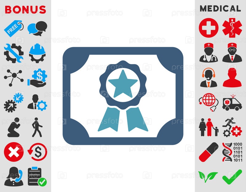 Награда диплом иллюстрации значок. Стиль является биколор плоский символ, голубой и синий цвета, закругленные углы, белый фон