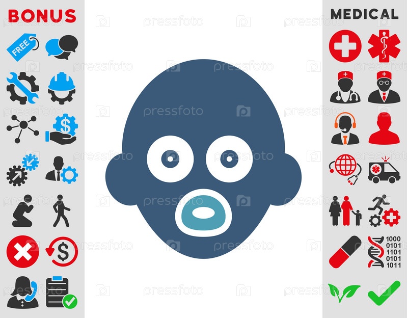 Детские головы иллюстрации значок. Стиль является биколор плоский символ, голубой и синий цвета, закругленные углы, белый фон