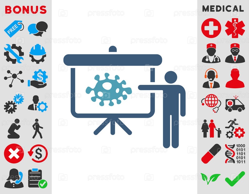 Бактерии лекция иллюстрации значок. Стиль является биколор плоский символ, голубой и синий цвета, закругленные углы, белый фон