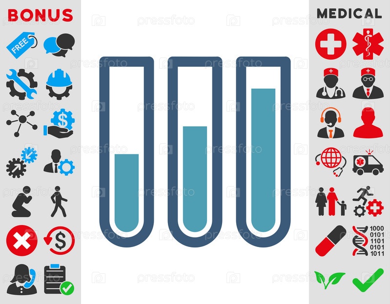 Анализ крови иллюстрации значок. Стиль является биколор плоский символ, голубой и синий цвета, закругленные углы, белый фон