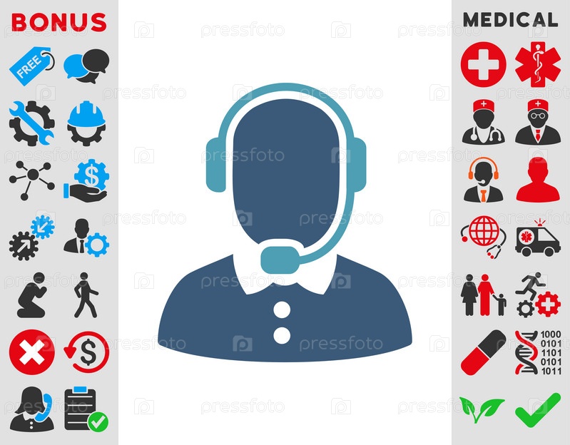 Оператор центр звонка иллюстрации значок. Стиль является биколор плоский символ, голубой и синий цвета, закругленные углы, белый фон