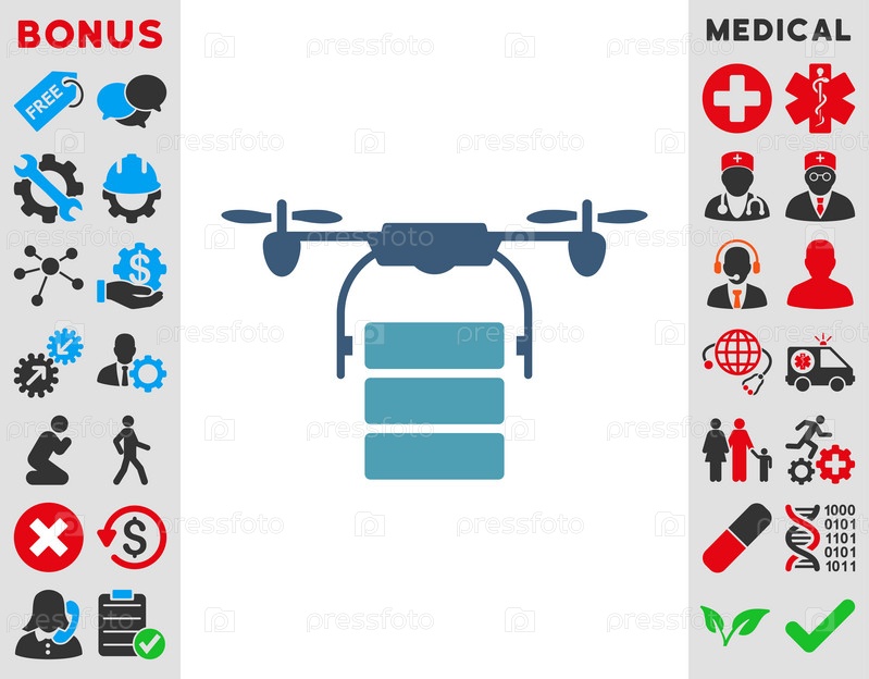 Грузовой беспилотный иллюстрации значок. Стиль является биколор плоский символ, голубой и синий цвета, закругленные углы, белый фон