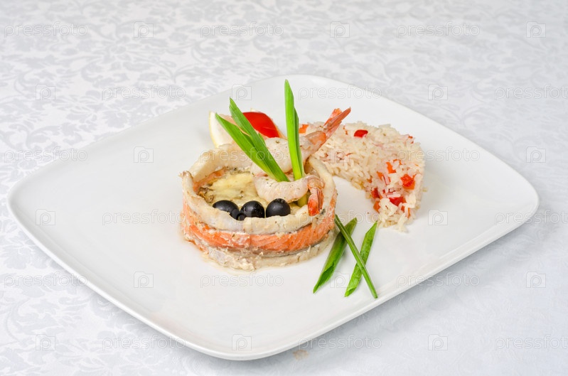 Вкусно приготовленная рыба с рисом и овощами