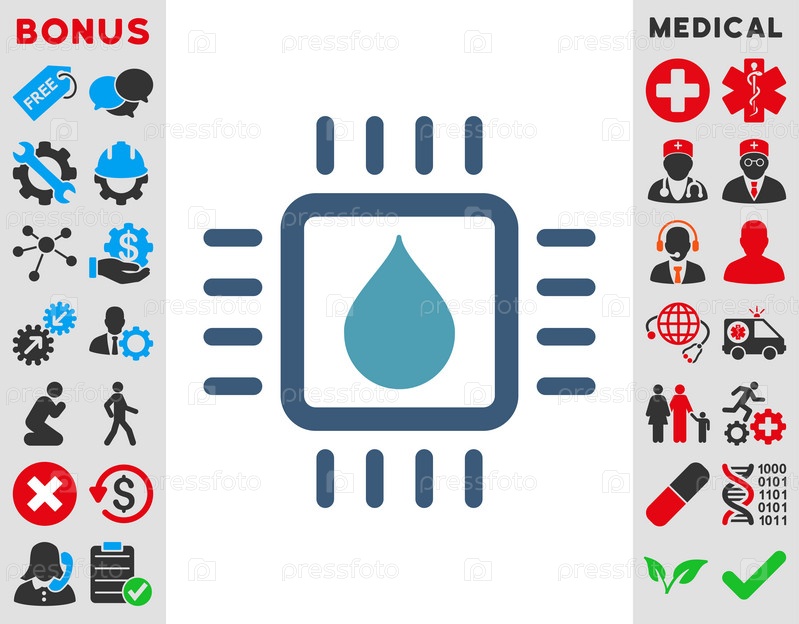 Перетащите значок иллюстрации анализа чипа. Стиль является биколор плоский символ, голубой и синий цвета, закругленные углы, белый фон