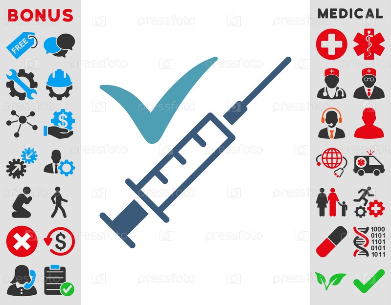 Сделали вакцинацию иллюстрации значок. Стиль является биколор плоский символ, голубой и синий цвета, закругленные углы, белый фон