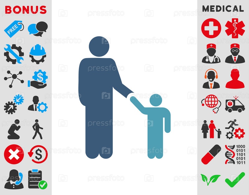 Отец с сыном иллюстрации значок. Стиль является биколор плоский символ, голубой и синий цвета, закругленные углы, белый фон