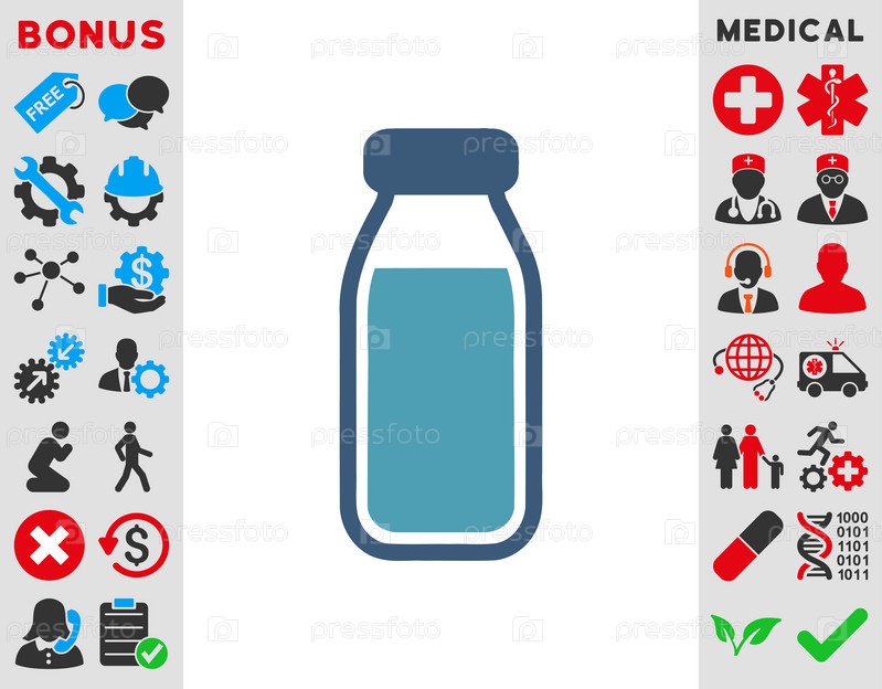 Полная бутылка иллюстрации значок. Стиль является биколор плоский символ, голубой и синий цвета, закругленные углы, белый фон
