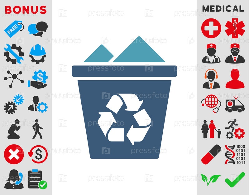 Полное иллюстрации значок корзины. Стиль является биколор плоский символ, голубой и синий цвета, закругленные углы, белый фон