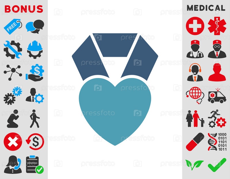Сердце значок Иллюстрация премии. Стиль является биколор плоский символ, голубой и синий цвета, закругленные углы, белый фон