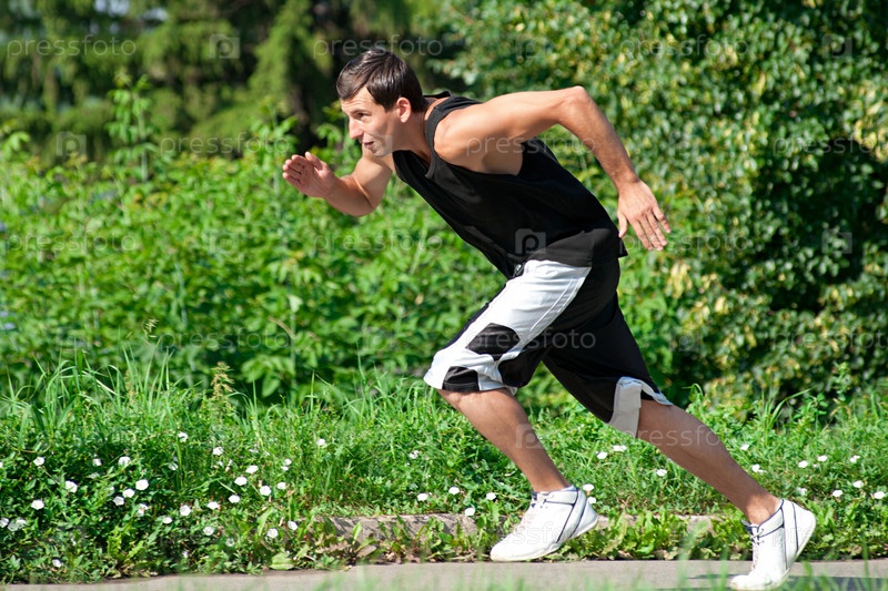 Мускулистый парень на пробежке в парке