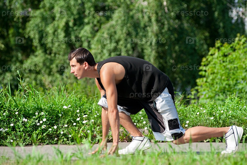 Мускулистый парень готовиться к пробежке