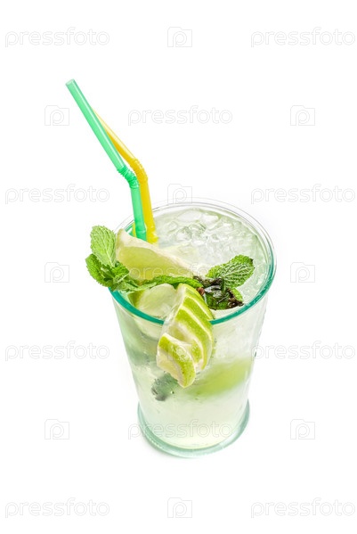 Свежий коктейль мохито, изолированный на белом фоне