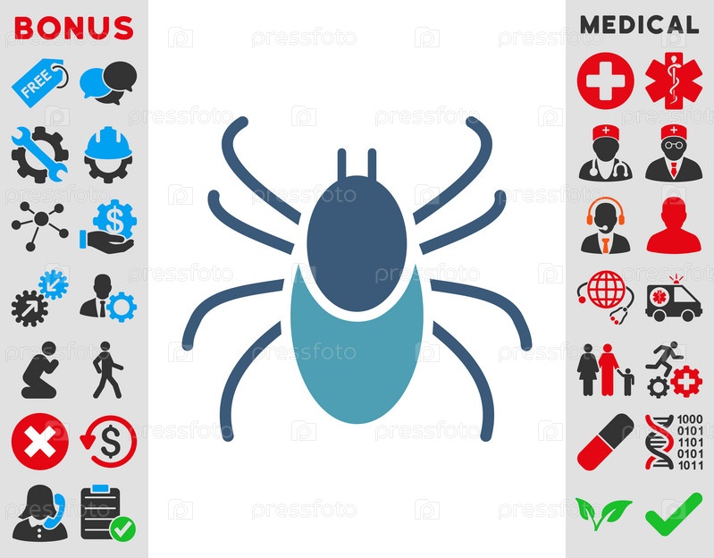 Клещ иллюстрации значок. Стиль является биколор плоский символ, голубой и синий цвета, закругленные углы, белый фон