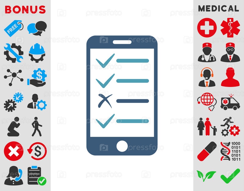 Мобильный тест иллюстрации значок. Стиль является биколор плоский символ, голубой и синий цвета, закругленные углы, белый фон